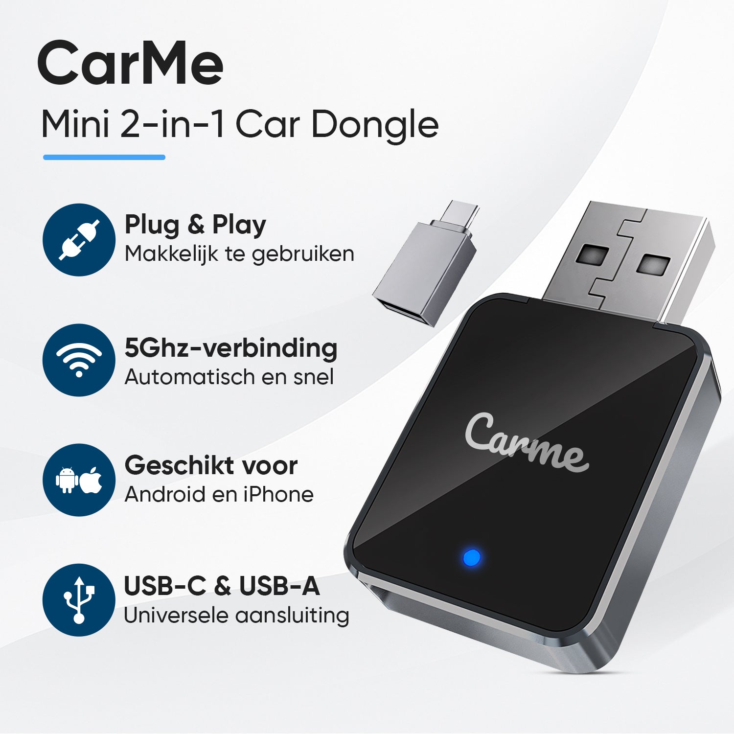 Met de CarMe Mini 2-in-1 Car Dongle V2 zet je een stap vooruit in de wereld van connectiviteit in de auto. Upgrade je rijervaring vandaag nog en voeg deze in je winkelwagen!